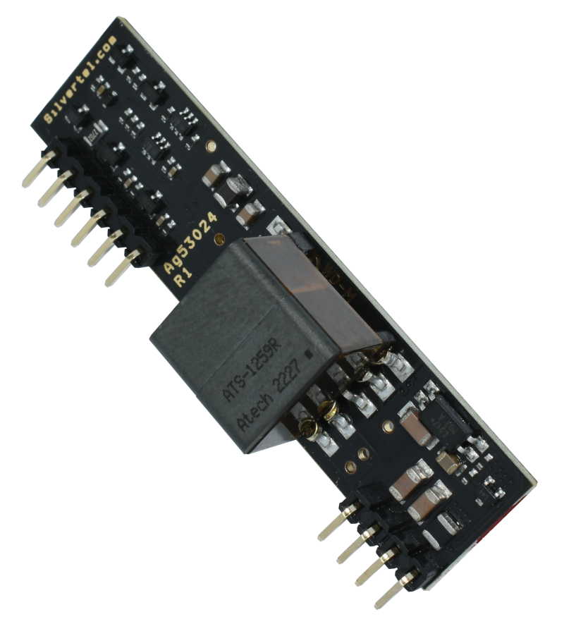 EvalAgSIL is designed for testing and evaluation of the Ag53000 range of PoE PD modules. It provides a regulated DC output with voltage dependent on which version of Ag53000 is fitted. The evaluation board will work with Power Sourcing Equipment (PSE) that supplies power over the spare pair or data pairs. It can also be used in conjunction with Silvertel’s Ag6130, Ag6120 or Ag6810 PSE modules as compatible PSEs. Please use the links provided to order boards or download the user manual.