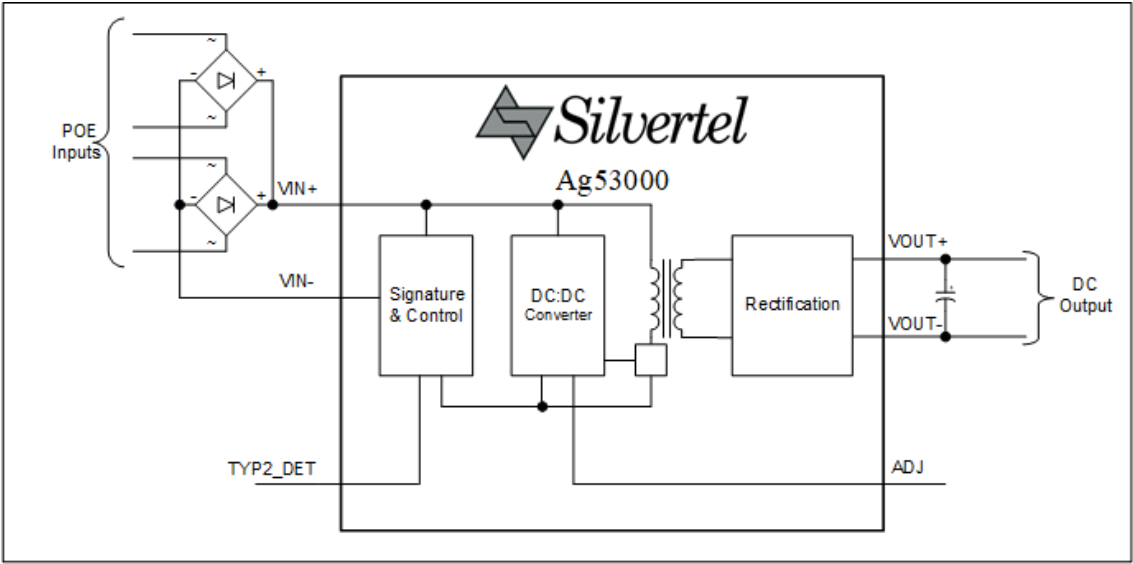 The Ag53000 series Power-over-Ethernet (PoE+) Powered Device (PD) modules are designed to extract power from a conventional twisted pair Category 5 Ethernet cable, conforming to the IEEE802.3 PoE standard, with full compatibility with the IEEE802.3at and IEEE802.3af amendments.